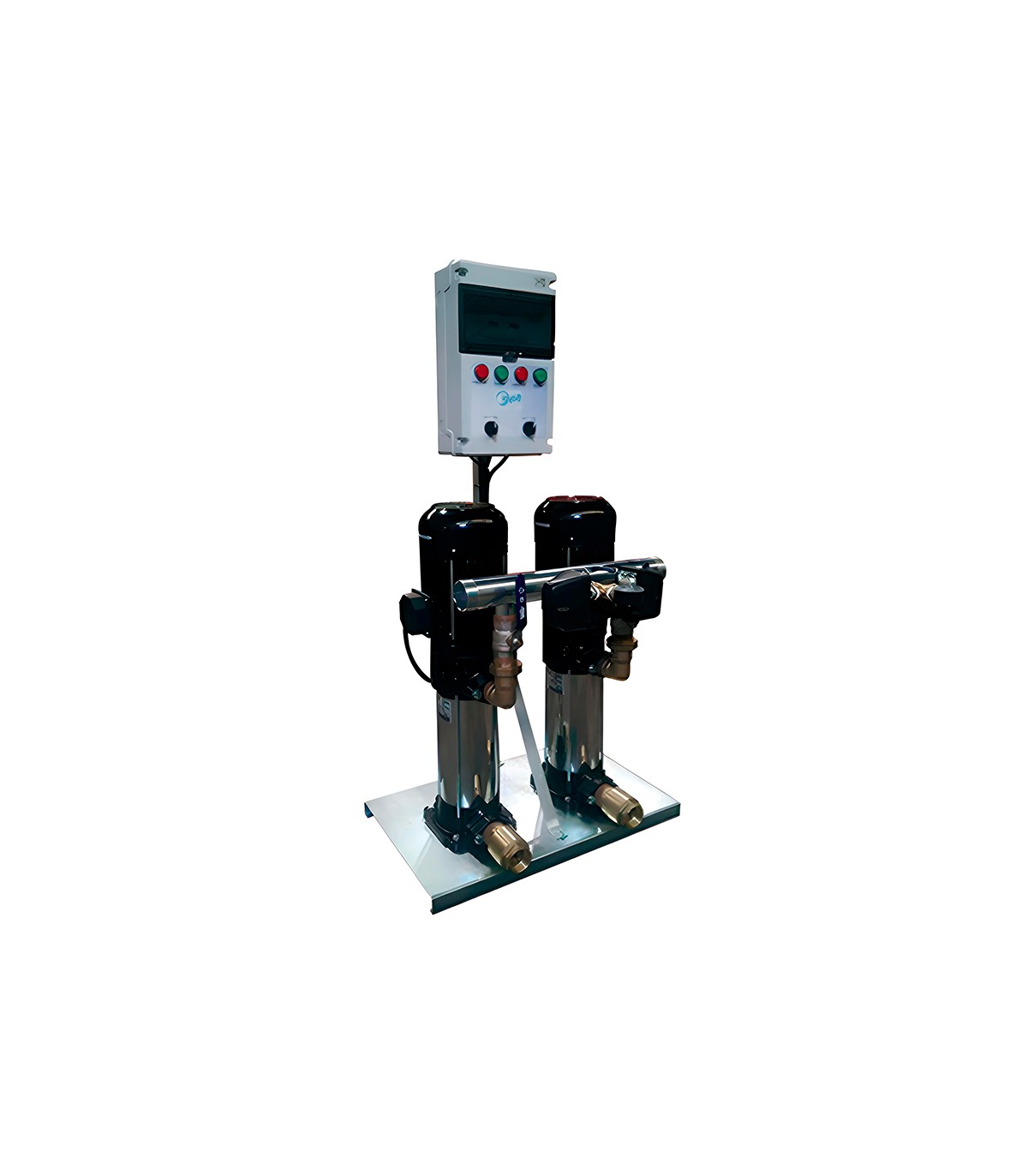 Grupos gemelos verticales totalmente montados en bancada, con colector, válvulas y cuadro eléctrico con alternancia o variador.