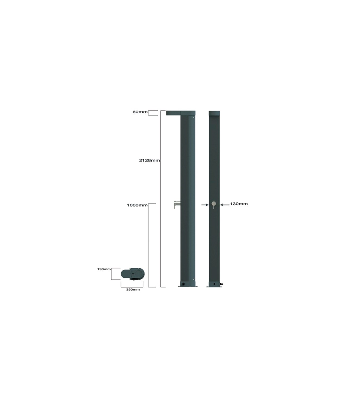 - Ducha Ángel solar de AstralPool fabricada en aluminio gris, que destaca por su diseño elegante capaz de adaptarse a todos los entornos.