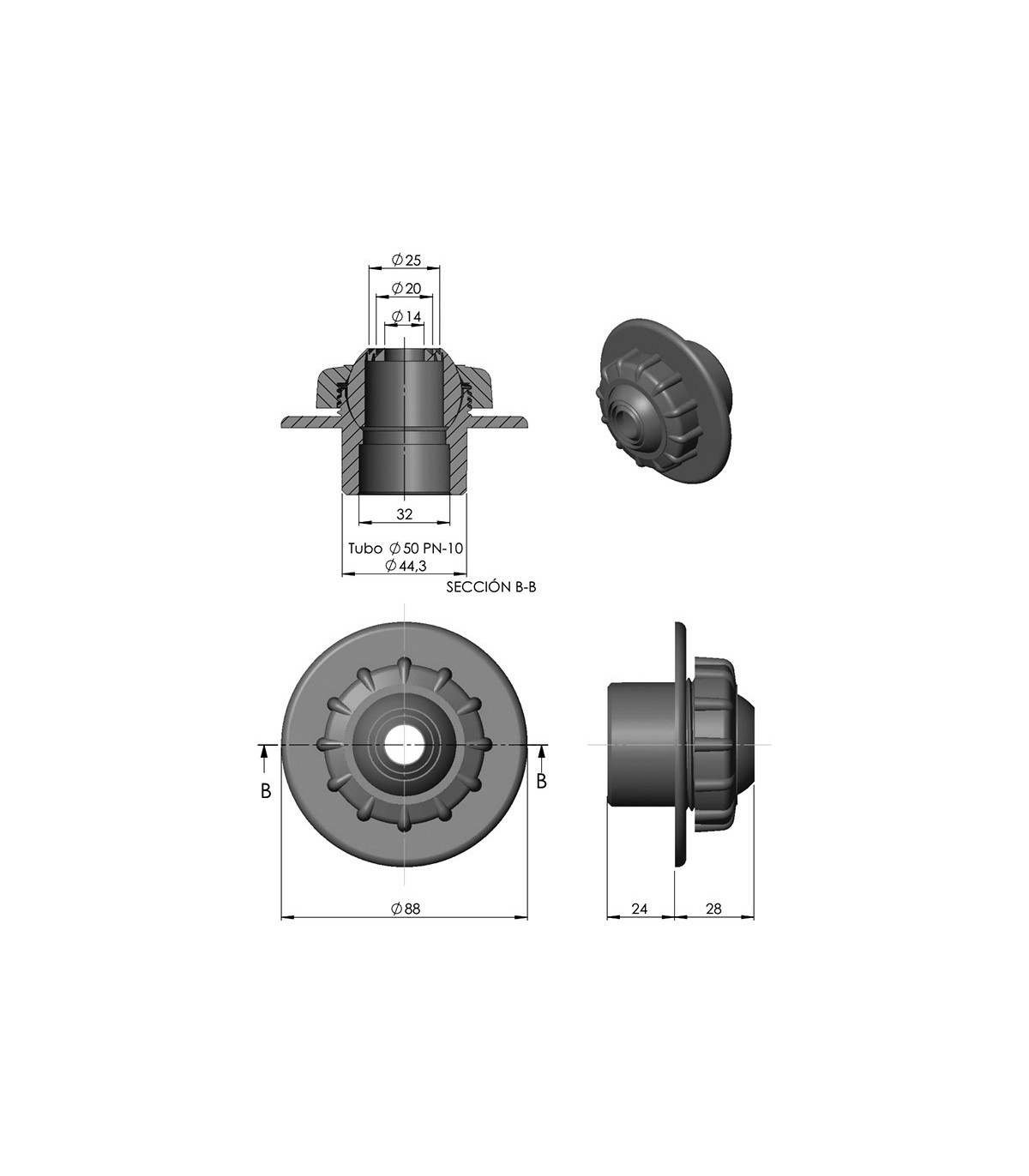 Boquilla de impulsión para piscinas de hormigón fabricada en ABS para una máxima resistencia.