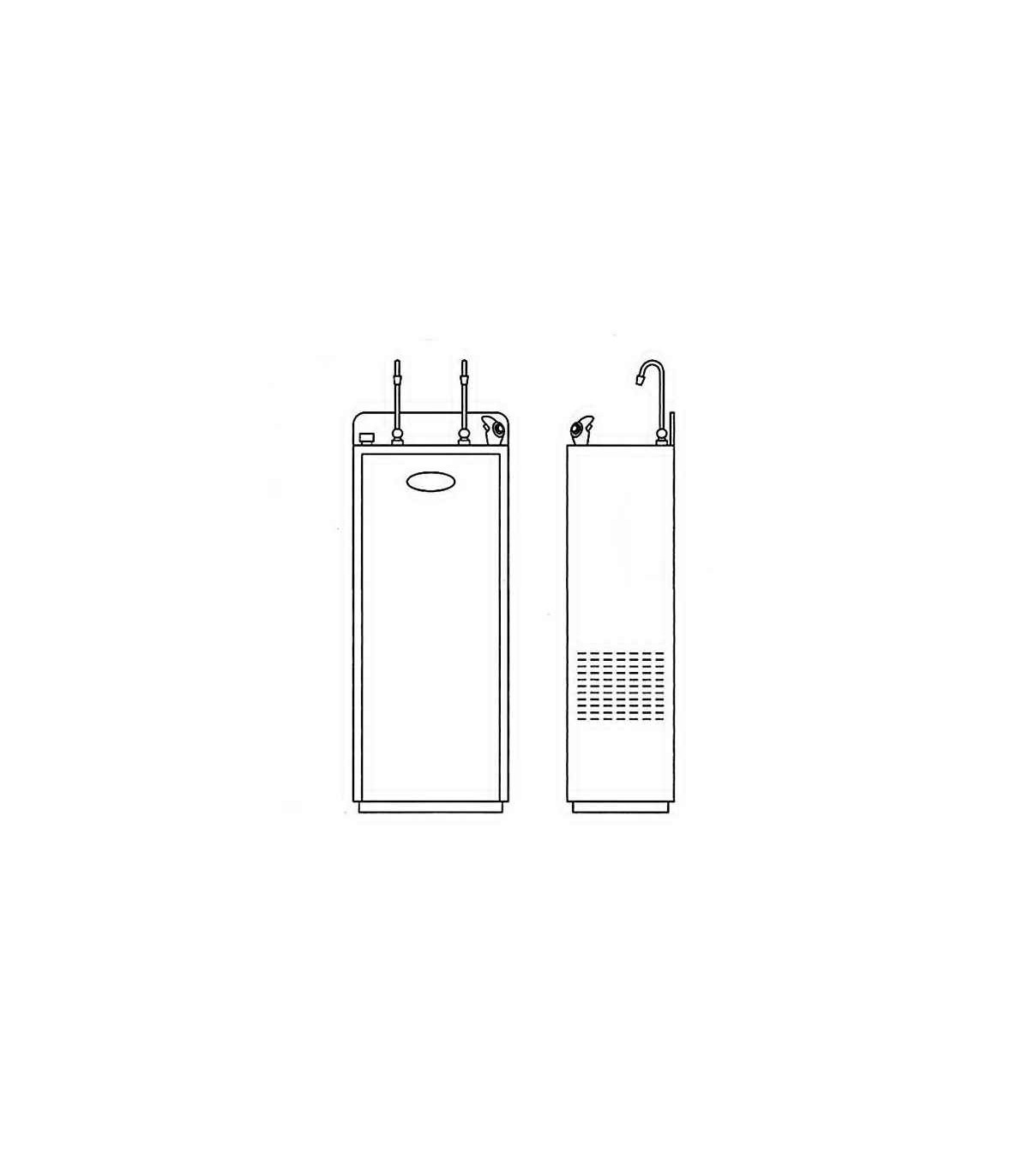 - Dispensador de agua equipada con sistema de filtración por ósmosis inversa 5 etapas. Filtración mixta de sedimentos+carbón, decloración GAC, membrana O.I., posfiltro de carbón.