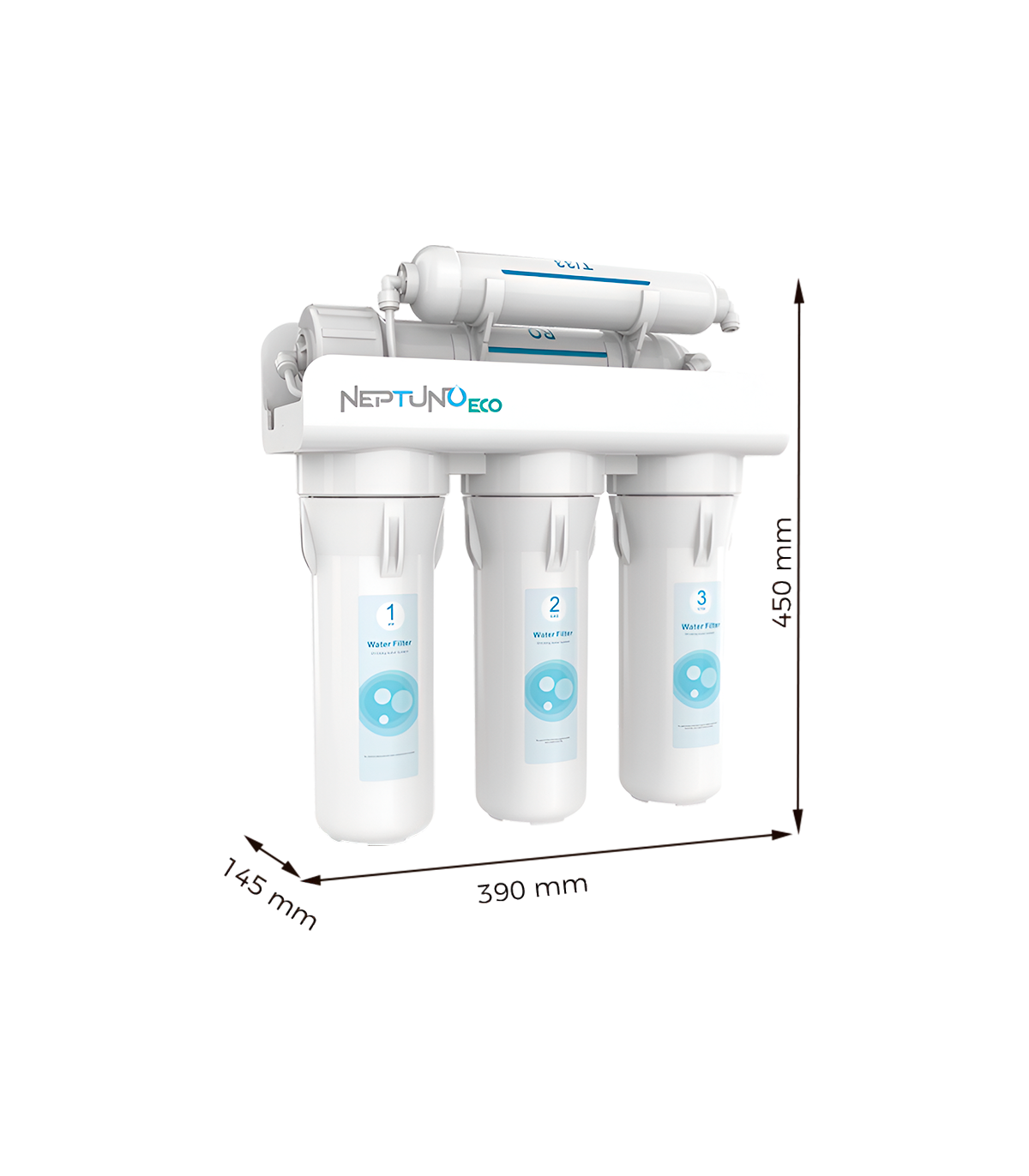 - Equipo de ósmosis inversa doméstico para la producción de agua con un bajo contenido de sales, libre de virus y contaminantes químicos.